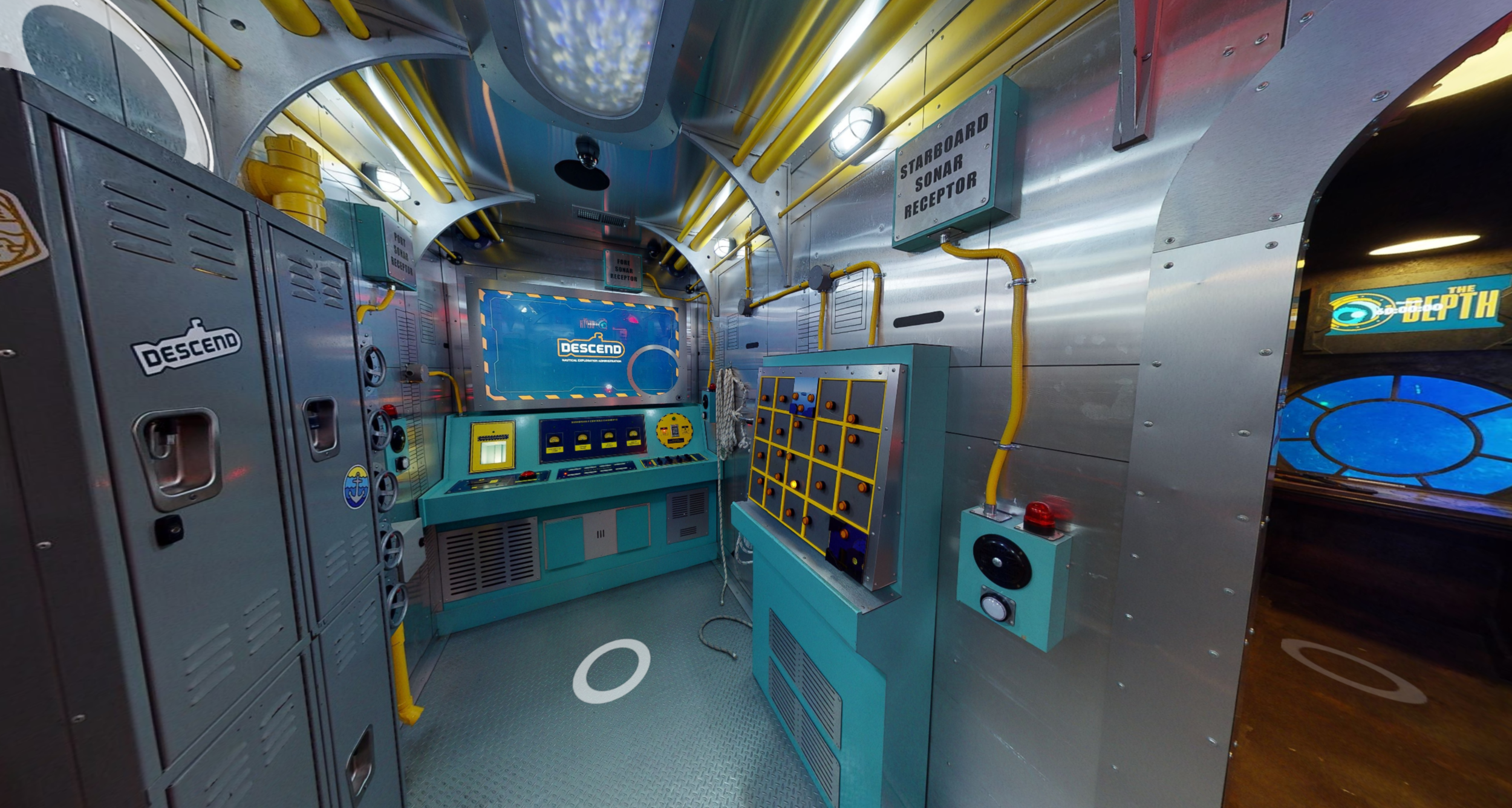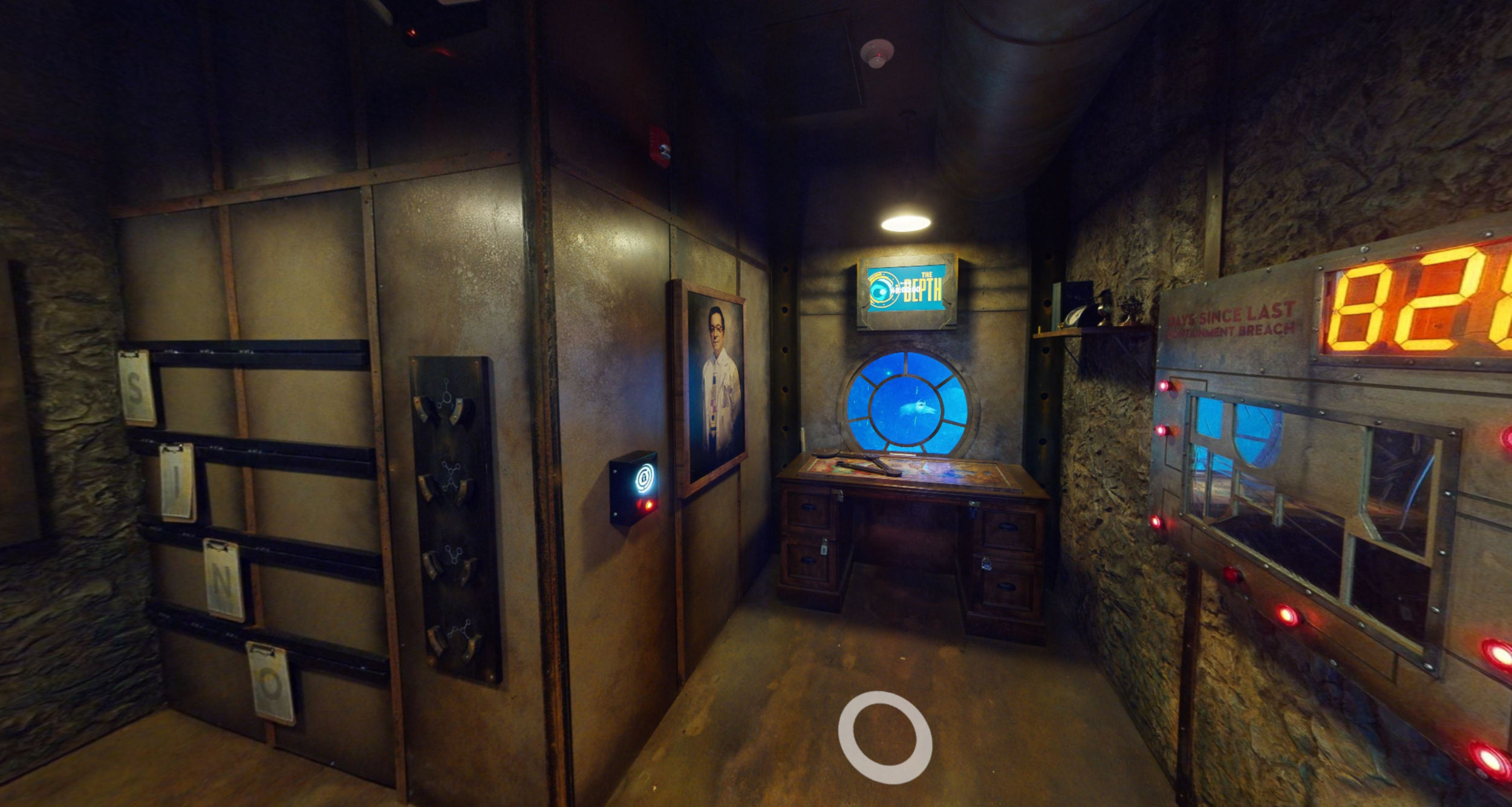 Having proved we had enough space, we developed a “Docking” sequence during which players dock their submarine at an underground laboratory, and step out into an all new location. The narrative had a three act structure where players would solve the first room, then the second, and then play through an escape sequence that played out across both rooms. This way, we were able to maintain the house style of an expanding play space—punctuated by "wow moments"—with a significantly smaller footprint than other Escape Game titles.